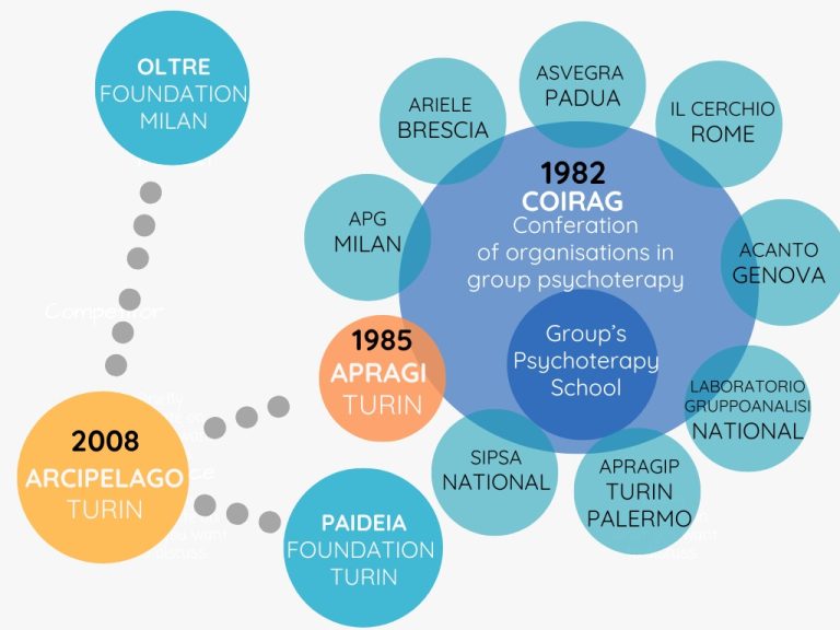 It was 2006 and the signs of the economic crisis that would explode in 2008 were already visible. The 2008 crisis led many states to cut public spending. The Italian National Health Service also suffered the consequences of that crisis (in Italy, all citizens are guaranteed free access to health care and equal provision of services). Already in 2006, there was an increase in waiting lists, and the farsightedness of group-analytic thinking, attentive to detecting the signals coming from the social sphere, in fact predicted the need to create a middle ground between the public and private sectors, offering psychological services at lower rates as suggested by Fondazione Oltre. At the same time, special thought was given to the young colleagues finishing the Coirag Apragi Training who, due to the continuous economic cuts, could not find an employment within the National Health Service, as they would only a few years earlier. In practical terms, thinking in a complex way means grasping the movements of the times in which one lives, putting oneself in constructive, non-ideological dialogue with the social movements, opportunities and constraints encountered along the way. With this in mind, Fondazione Oltre suggested that the most suitable legal form for the Arcipelago project would be that of a Social Cooperative.  This was an initial transformation that the encounter between group-analysis and the business world has produced.