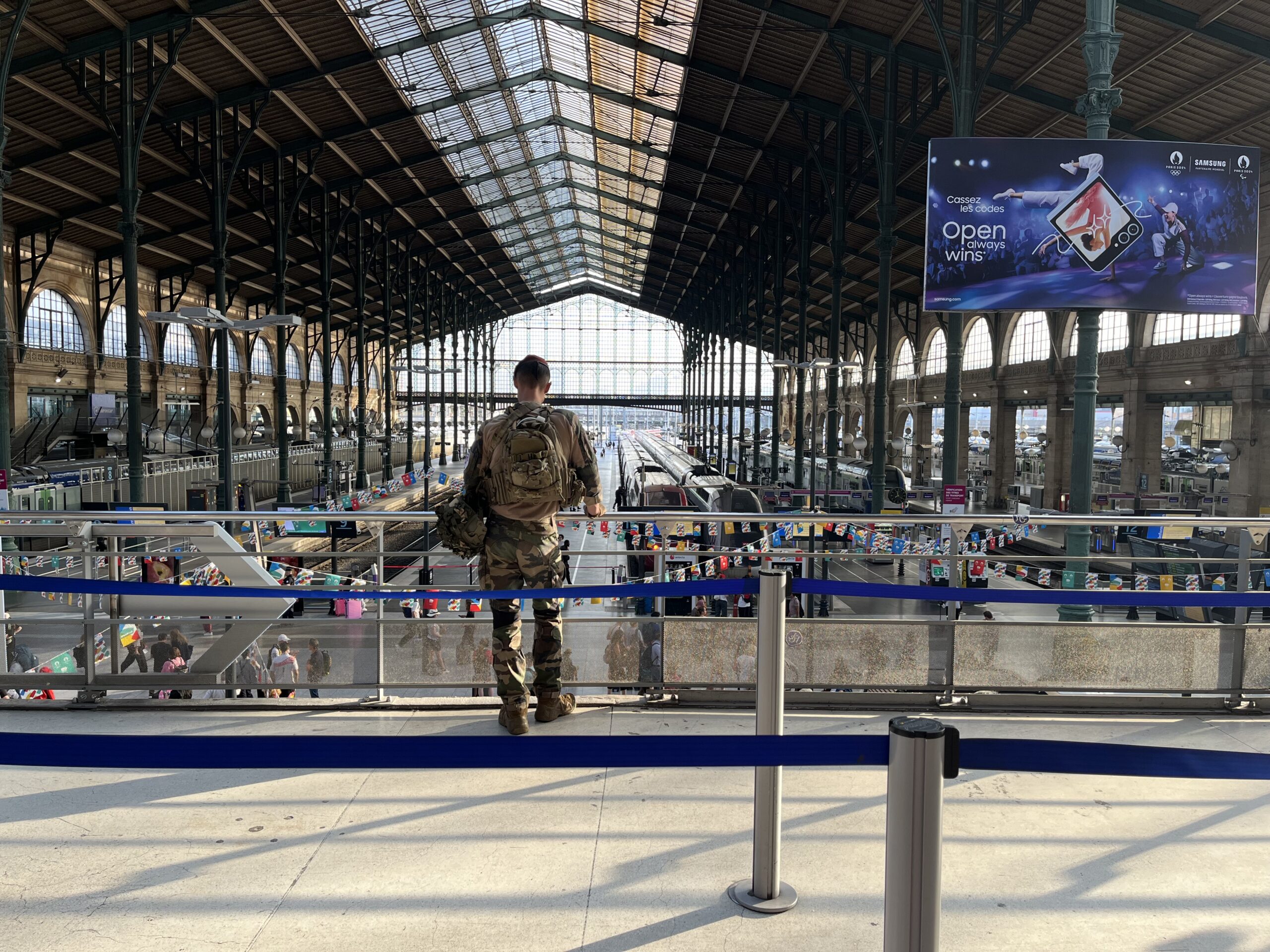 Soldier looking out on Paris Gare de Lyon